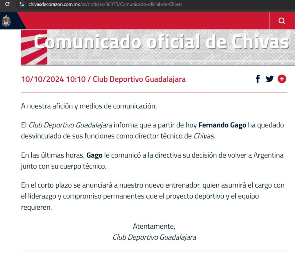 El flamante entrenador «Xeneize» ejecutó su cláusula de rescisión con Chivas de Guadalajara, valuada en 1.500.000 dólares, y quedó libre para regresar a Argentina y ponerse al mando del equipo de la Ribera. Dicha cifra será absorbida por Boca como parte del contrato que firmará Gago con el club, lo que cierra el último paso para su arribo.