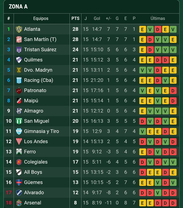 Esta victoria, deposita a los dirigidos por Gabriel Gómez en el séptimo lugar del grupo «A» con 21 unidades, compartiendo dicha ubicación con Quilmes, Deportivo Madryn, Racing de Córdoba, Deportivo Maipú y Almagro. Por su parte «El Verde» quedó décimo con 20 puntos.