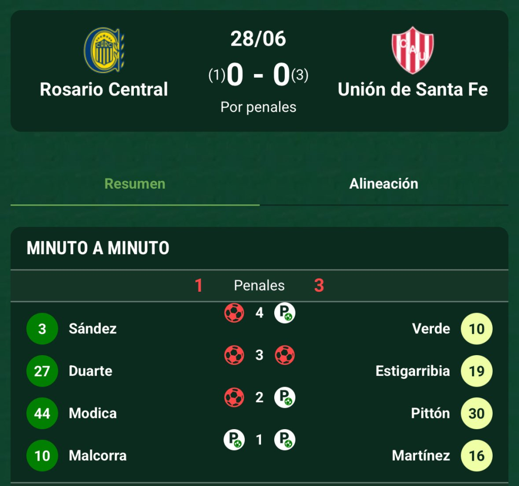 – Martínez y Pittón convirtieron sus respectivos penales. – Estigarribia falló su ejecución. – Finalmente, Verde marcó el penal decisivo, con suspenso, asegurando la clasificación de Unión a los octavos de final.