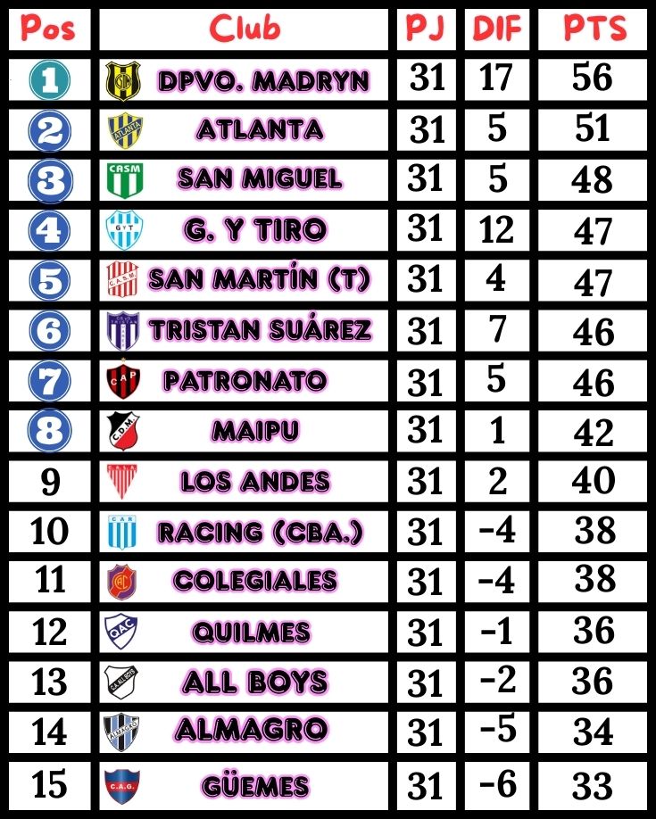 TABLA DE POSICIONES – FECHA Nº 31