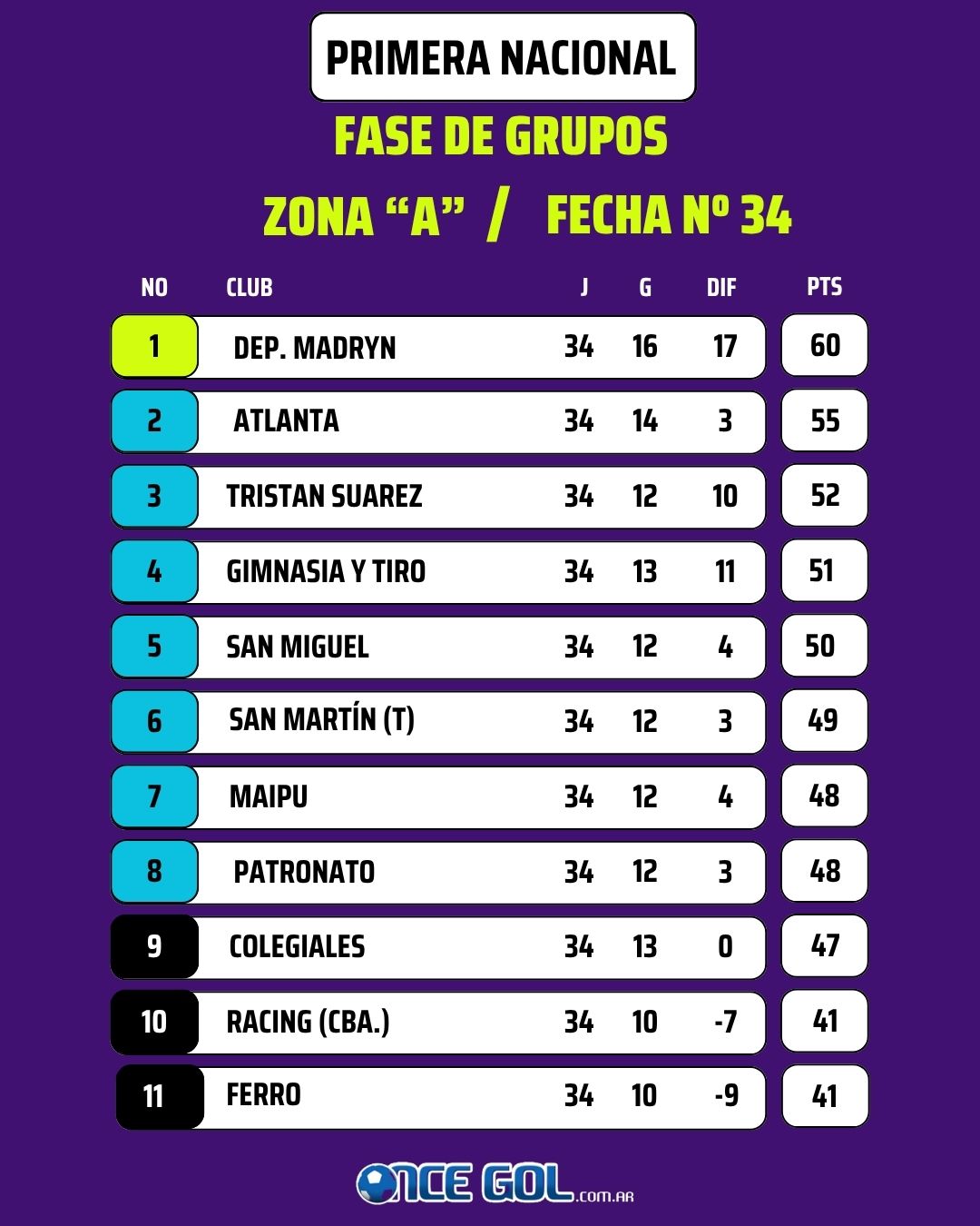 Patronato término con 48 unidades en el octavo lugar y jugará con el segundo de la Zona «B», y definirá siempre en condición de visitante en caso de seguir en competencia.