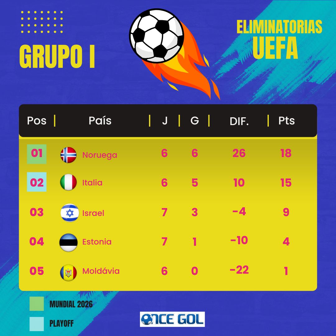 La Azzurra, ausente en los dos últimos Mundiales, aún puede teóricamente terminar primera y, por lo tanto, clasificar directamente para el próximo Mundial. Pero debe ganar sus dos últimos partidos a mediados de noviembre contra Moldavia y Noruega, y marcar muchos goles para superar al líder noruego, que tiene 18 puntos y una diferencia de goles claramente favorable (+26 frente a +10).