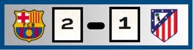 Atlético abrió el marcador por intermedio de Álex Baena 19’(PT) tras un pase largo de Nahuel Molina, quién rompió la última línea defensiva y enfrentó en soledad al arquero Joan García.y en gran definición marco el 1-0.