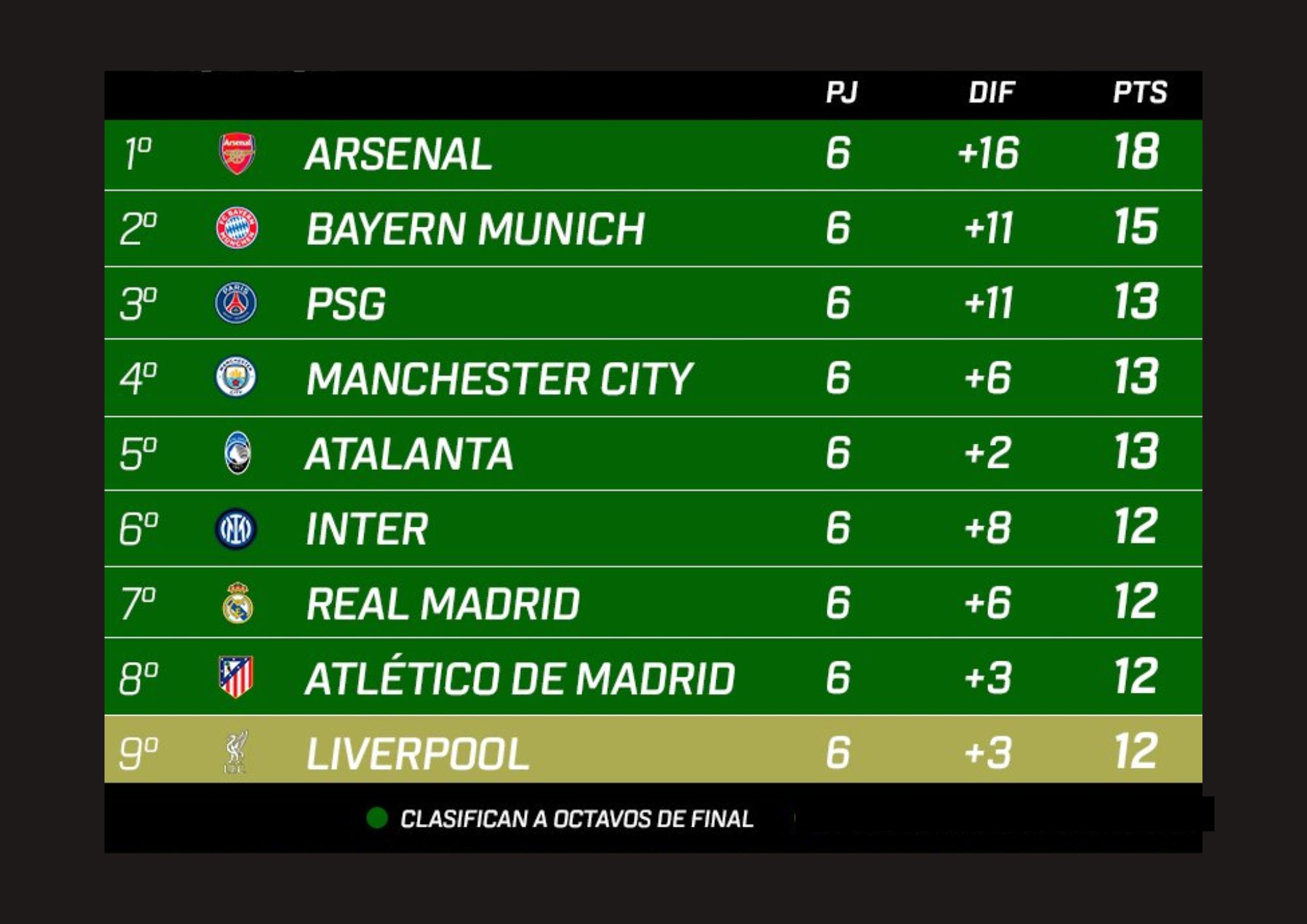 POSICIONES DE LA CHAMPIONS LEAGUE