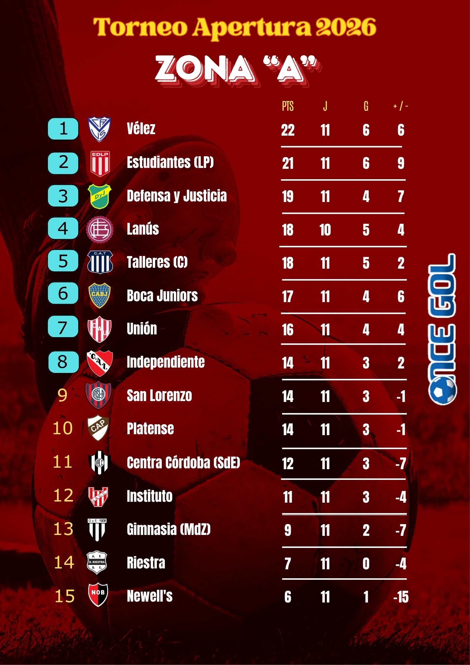 TABLA DE POSICIONES