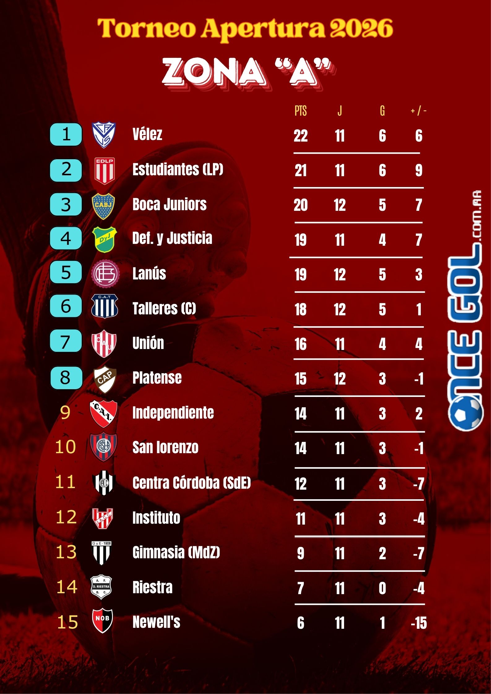 TABLA DE POSICIONES – Zona «A»
