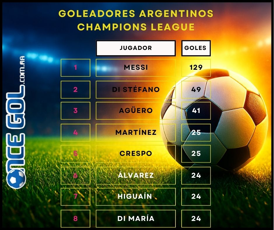 TABLA HISTÓRICA DE GOLEADORES ARGENTINOS EN LA CHAMPIONS LEAGUE