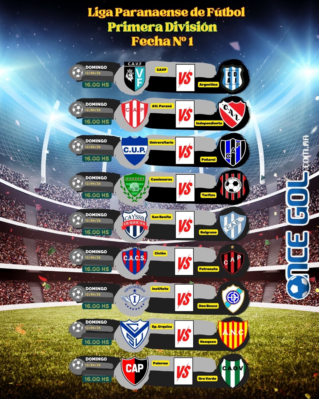 Entre los duelos más destacados aparece el debut absoluto de CAVF ante Argentino Juniors en Villa Fontana, mientras que Independiente enfrentará a Atlético Paraná en el estadio Pedro Mutio, con el Decano llegando como campeón de la Supercopa. Además, Universitario estrenará sus renovadas instalaciones frente a Peñarol.